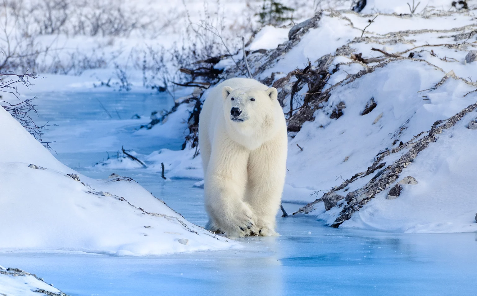 Мы приютили первого белого медведя благодаря программе PBI Polar Bear Tracker, в рамках которой с помощью GPS-ошейников отслеживаются перемещения медведей по западной части Гудзонова залива в Канаде и формируется одна из лучших в мире баз данных долгосрочного мониторинга белых медведей.